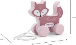 Roztomilá drevená ťahacia hračka v tvare líšky podporí prvé krôčiky a rozvoj motoriky vášho dieťaťa. Kompaktné rozmery, kvalitné drevo a hladké spracovanie zaručujú bezpečné a zábavné hranie. Ideálna hračka pre vek 18 mesiacov+ s pevnou šnúrkou na ťahanie a stabilnými kolieskami.