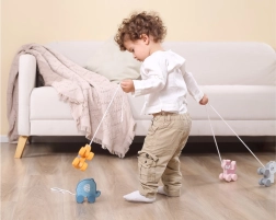 Ťahacia hračka je ľahká, ľahko uchopiteľná a bezpečná – má hladké hrany a kvalitnú povrchovú úpravu. Skvele sa hodí doma aj na prechádzky po byte. Kompaktná veľkosť uľahčuje ukladanie aj prenášanie.