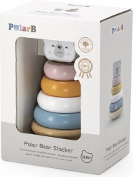 Drevená vzdelávacia pyramída s motívom Ľadového medveďa je ideálnou hračkou pre najmenších. Táto pyramída je vybavená šiestimi krúžkami rôznych veľkostí a farieb, vrátane jedného hlavného krúžku s hlavou medveďa. Vďaka odolnej drevenej konštrukcii je hračka nielen bezpečná, ale tiež odolná.