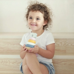 Sada obsahuje šesť pastelovo farebných krúžkov, vrátane hlavného krúžku s medvedou hlavou, ktoré rozvíjajú vizuálne a motorické zručnosti.