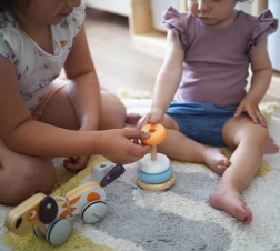 Drevená konštrukcia zaisťuje dlhú životnosť hračky, bezpečnosť a ekologický prístup, čím sa ideálne hodí pre najmenších.