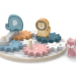 Podporujte zábavu a rozvoj s našimi drevenými ozubenými kockami, kde sa mechanika stáva hrou. Set obsahuje 7 farebných ozubených dielov, 3 zábavné figúrky zvierat a základnú dosku, na ktorú môžete umiestniť ozubené kolesá tak, aby jedno pohybovalo ostatnými.
