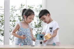 - Deti môžu kocky voľne skladať, učiť sa čísla, priraďovať tvary v triediči a spoznávať zvieratká