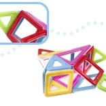 Kocky rôznych tvarov pomôžu postaviť jedinečné stavby. Môžete vytvárať 3D stavby alebo ploché formy. Rozhodnite sa, čo chcete postaviť sami. Skvelá zábava zaručená! Silné magnety uľahčujú stavanie jedinečných stavieb. Kocky sú skvelým prostriedkom pre rozvoj a kreatívnu zábavu. Kreatívna hračka, s ktorou nie je čas na nudu. Vynikajúcim spôsobom stimuluje predstavivosť, podporuje kreatívne a nekonvenčné myslenie a skvele rozvíja manuálnu zručnosť u najmenších detí. Farebné kocky vám navyše budú skvelým pomocníkom pri učení názvov farieb alebo počítaní. Nazbierajte všetky 3 sady a postavte si fantastického robota. Sada obsahuje 38 prvkov, medzi ktorými nájdete: