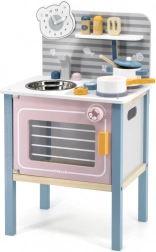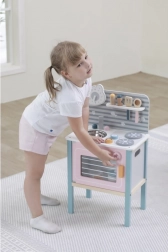 Urobte deťom radosť s touto drevenou kuchynkou, ktorá obsahuje sporák, rúru a drez. Súčasťou sady sú aj riady a doplnky vhodné pre deti od troch rokov.