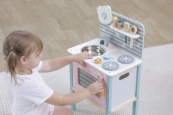 Kuchynka je navrhnutá pre bezpečné hranie detí od troch rokov, podporuje rozvoj jemnej motoriky a učenie sa napodobňovania.
