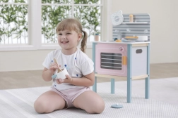 Transformujte detskú hru s touto príťažlivou drevenou kuchynkou. Určená pre mladé kuchárky a kuchárov, táto kuchynka poskytuje deťom možnosť simulovať varenie a pečenie vďaka svojim realistickým prvkom.