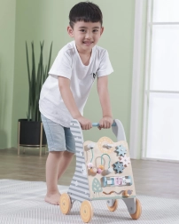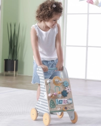 Drevené vzdelávacie chodítko od Viga Toys je vynikajúcim nástrojom pre rozvoj motorických schopností a kognitívnych zručností u detí od 18 mesiacov. Multifunkčný dizajn kombinuje stabilné chodítko a interaktívny vzdelávací panel, ktorý deti učí rozoznávať tvary a farby. Otočné elementy ako ozubené kolesá, dráhy so zvieratkami a bočné panely udržia detskú pozornosť a zábavu.