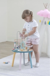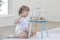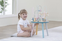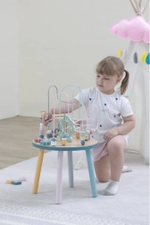 Detský drevený aktívny stolík s korálkovým labyrintom