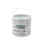 Pevné vedierko s uškom uľahčuje prenášanie aj ukladanie stavebnice. Vďaka kompaktným rozmerom je hračka ideálna aj na cesty.