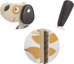 Roztomilý drevený ťahací psík podporuje prvé krôčiky, rozvíja jemnú motoriku a koordináciu a vďaka gumovým kolieskam s tichým chodom je ideálny do bytu. So šnúrkou na vedenie a veselým vŕtením chvostíka je to skvelý darček pre malých objaviteľov.