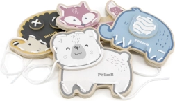 Sada PolarB Match & Thread prináša deťom radosť z tvorenia a učenia. Farebné drevené karty zvieratiek majú hladké hrany a dostatočne veľké otvory na ľahké prevliekanie. Deti si precvičia úchop, presnosť a logické myslenie, zatiaľ čo skladajú jednotlivé časti dohromady a trénujú šnurovanie.