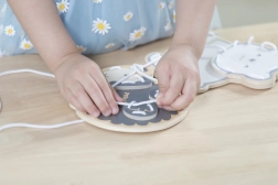 Každé zvieratko je rozdelené na časti, ktoré deti spájajú šnúrkou. Zábavný spôsob, ako posilniť úchop a sústredenie bez obrazoviek.