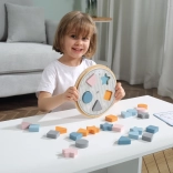 Objavte zábavnú a vzdelávaciu hru, vďaka ktorej si deti prirodzene osvoja rozpoznávanie tvarov a farieb. Otočná doska umožňuje meniť farebné vzory, takže hra zostáva stále atraktívna a variabilná. Karty s predlohami vedú deti krok za krokom a rozvíjajú ich logiku, sústredenie a koordináciu oko–ruka.