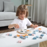 Dieliky majú hladké, zaoblené hrany a sú opatrené bezpečnými, netoxickými farbami v jemných pastelových tónoch – ideálne pre malé detské ruky.