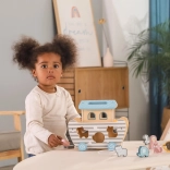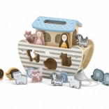Vďaka 14 kusom – arche, domčeku a sade zvieratiek – sa deti naučia rozlišovať tvary, farby a dvojice, zároveň si trénujú koordináciu oko–ruka a logické myslenie. Hračka je vhodná od 18 mesiacov a vďaka zaobleným hranám je bezpečná pre malých prieskumníkov.