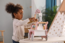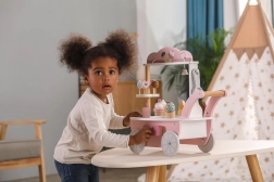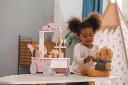Detský drevený stánok 3v1 POLARB od VIGA premení každý pokoj na sladké kráľovstvo. Vďaka pojazdnému prevedeniu, zvončeku a pestrej sade drevených dobrôt si deti precvičia kreativitu, komunikáciu a stvárňovanie rolí predavača či cukrára. Jemná pastelová paleta a precízne spracovanie lákajú k hre znova a znova.
