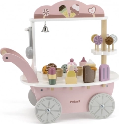 Rozkošný drevený stánok 3v1 od VIGA – rada POLARB – funguje ako cukráreň, zmrzlináreň aj malý obchodík. Deti si užijú role-play predavača, pripravovanie dobrôt a obsluhu zákazníkov. Súčasťou sú bohaté doplnky (lízatká, zmrzliny, kornúty, polevy), praktická otváracia polička a bezpečné prevedenie z kvalitného dreva s netoxickými farbami v jemných pastelových farbách.