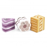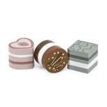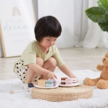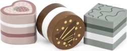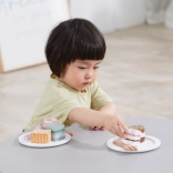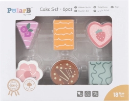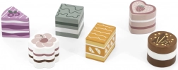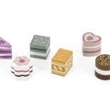 Táto sada obsahuje šesť krásne spracovaných drevených zákuskov rôznych tvarov a farieb – plátky torty, koliesko, srdiečko či hranolček. Deti sa môžu hrať na cukráreň, servírovať medvedíkovi alebo usporiadať čajový večierok. Každý kúsok dobre sedí do detskej ruky a láka k opakovanému hraniu.