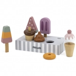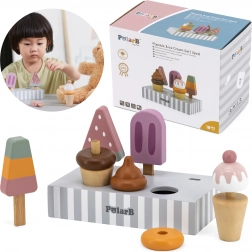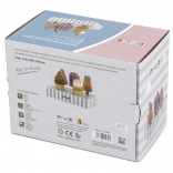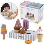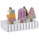 Sada 5 drevených nanukov v lákavých farbách prináša deťom nekonečnú porciu zábavy. Nanuky sú umiestnené na stabilnom drevenom stojane, ktorý slúži na vystavenie aj prehľadné ukladanie. Všetko je vyrobené z kvalitného dreva a maľované bezpečnými, netoxickými farbami.