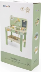 Objavte kvalitný drevený pracovný ponk pre deti z exkluzívnej série POLARB od značky VIGA. Malí domáci majstri môžu zatlkať klince, uťahovať skrutky kľúčom, pripevňovať doštičky a ozubené kolieska a hravou formou trénovať jemnú motoriku. Súčasťou sú hodiny s ručičkami, drevené autíčko, praktická polica na náradie a tabuľa na kreslenie pre ešte viac zábavy.