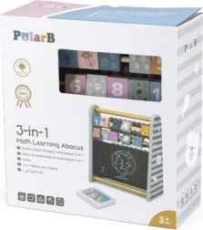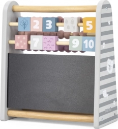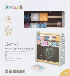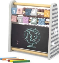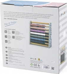 Toto multifunkčné drevené počítadlo 3 v 1 spája učenie a hru do jedného celku. Deti si pomocou farebných korálikov precvičia počítanie, s preklápacími kockami s číslami sa naučia rozpoznávať číslice a jednoduché vzťahy a na tabuli s kriedou môžu písať či kresliť svoje prvé príklady aj obrázky.
