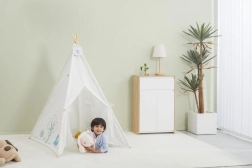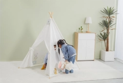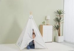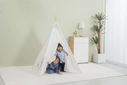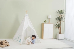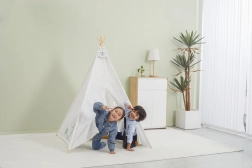 Teepee stan POLARB premení každú izbu na čarovné miesto plné fantázie. Minimalistický dizajn v bielej farbe s milými zvieracími motívmi zapadne do moderného interiéru a vytvorí deťom pokojný, inšpiratívny priestor. Pevná konštrukcia s drevenými tyčami zaistí stabilitu pri hraní a ľahko ho postavíte aj zložíte.