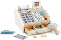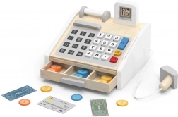 Drevená pokladňa je skvelá hračka, ktorá umožňuje deťom hrať sa na rôzne scénky z obchodu. Môžu sa stať pokladníkmi alebo zákazníkmi, cvičiť spoločenské interakcie a komunikačné schopnosti. Hotovosť alebo karta? Spočítajte sumu, prijmite peniaze a správne vydajte prebytok. Pokladňa obsahuje bankovky, mince a platobnú kartu.