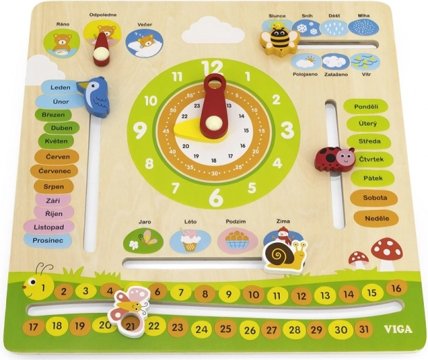 Vzdelávací kalendár VIGA je ideálna pomôcka pre deti na učenie sa o čase, zmenách počasia a ročných obdobiach. Vďaka farebným a pohyblivým prvkom pomáha každý deň pochopiť pojem času.