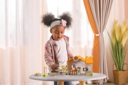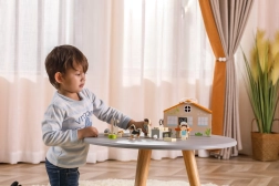 Hračka je rozprávkovo spracovaná z bukového dreva a natretá netoxickými farbami. Kovový zámok zabraňuje strate figúrok, čo zaisťuje bezpečnosť a organizáciu pri hraní.