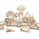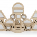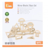 Súprava obsahuje 24 drevených obojstranných kociek so zrkadlami, ktoré deťom pomáhajú rozvíjať koordináciu očí a rúk a poznávanie rôznych tvarov. V balení nájdete šesť rôznych tvarov vrátane obdĺžnikových, štvorcových, okrúhlych, pravouhlých trojuholníkov, rovnostranných trojuholníkov a polkruhových tvarov. Vďaka zrkadlám deti tiež rozvíjajú pocit vlastného "ja", čo zvyšuje ich sebavedomie.