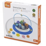 S drevenou hrou Balancovacia hra - Vesmírna zábava sa deti ponoria do vesmírneho dobrodružstva. Táto zábavná a vzdelávacia hra obsahuje základňu o rozmeroch 26 x 26 x 18 cm, ktorá pripomína kruh s vesmírnymi motívmi.