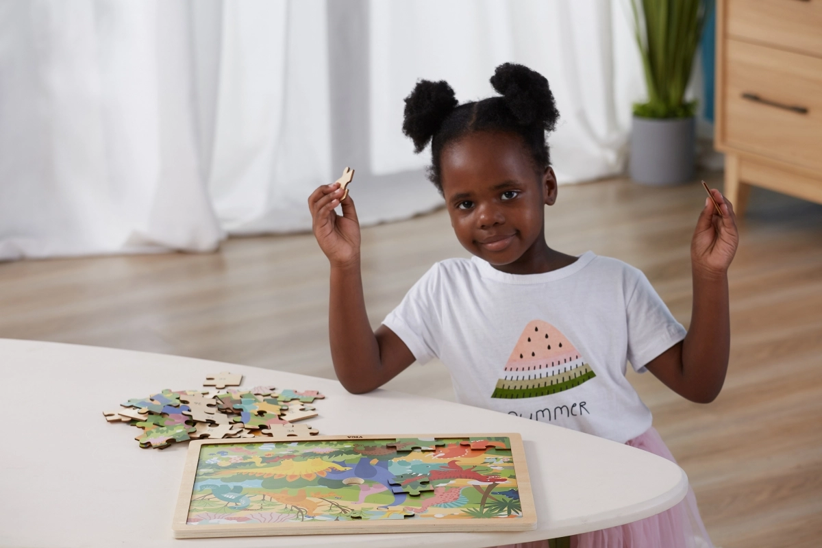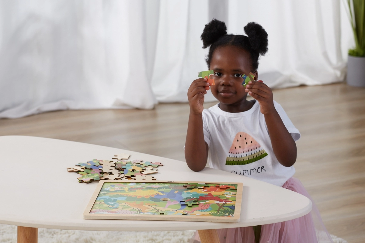 Skladanie 48 dielikov posilňuje koordináciu oko–ruka, rozpoznávanie tvarov a trénuje trpezlivosť aj koncentráciu.