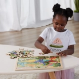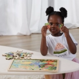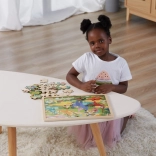 Pevná drevená podložka udržiava dieliky na mieste, uľahčuje prenášanie aj ukladanie a pomáha deťom sústrediť sa na skladanie obrázka.