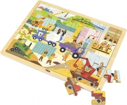 Toto kvalitné drevené puzzle s motívom staveniska je ideálnou voľbou pre prvé väčšie skladačky. Vďaka 48 presne vyrezaným dielikom si deti precvičia koordináciu oko–ruka a naučia sa rozpoznávať tvary a farby. Pevná drevená podložka drží obrázok pohromade a uľahčuje manipuláciu.