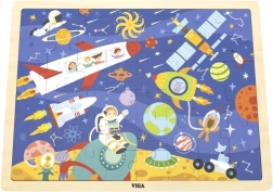 Táto kvalitná drevená skladačka so 48 dielikmi ponúka deťom pútavé dobrodružstvo vo vesmíre. Farebné ilustrácie planét, rakiet a astronautov udržiavajú pozornosť a podporujú prirodzenú zvedavosť. Puzzle je uložené v pevnom drevenom rámčeku, ktorý uľahčuje skladanie aj prenášanie.
