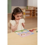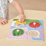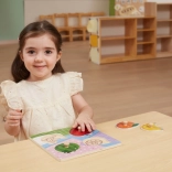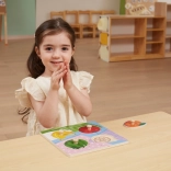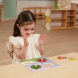 • - Úlohou dieťaťa je priradiť správne tvary a ovocie na správne miesta v doske,