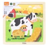 Drevené puzzle 9 dielikov s obrázkom kravičiek. Rozmer drevenej dosky cca 22 x 22 x 1 cm. Rozmer balenia cca 22 x 22 x 1 cm. Vek 18m+