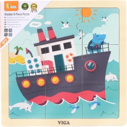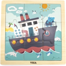 Výrobok je vyrobený z kvalitného dreva, má hladké, zaoblené hrany a je maľovaný netoxickými a pre deti bezpečnými farbami. Po vložení všetkých dielikov vznikne kompletný obrázok lode – ideálne pre prvé úspechy malých staviteľov.