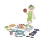 Táto kvalitná drevená hračka od značky VIGA ponúka zábavné prezliekanie magnetickej figúrky chlapca. Vďaka rôznym oblečkom a doplnkom deti ľahko vytvárajú originálne outfity, precvičujú pršteky a učia sa kombinovať farby aj štýly.