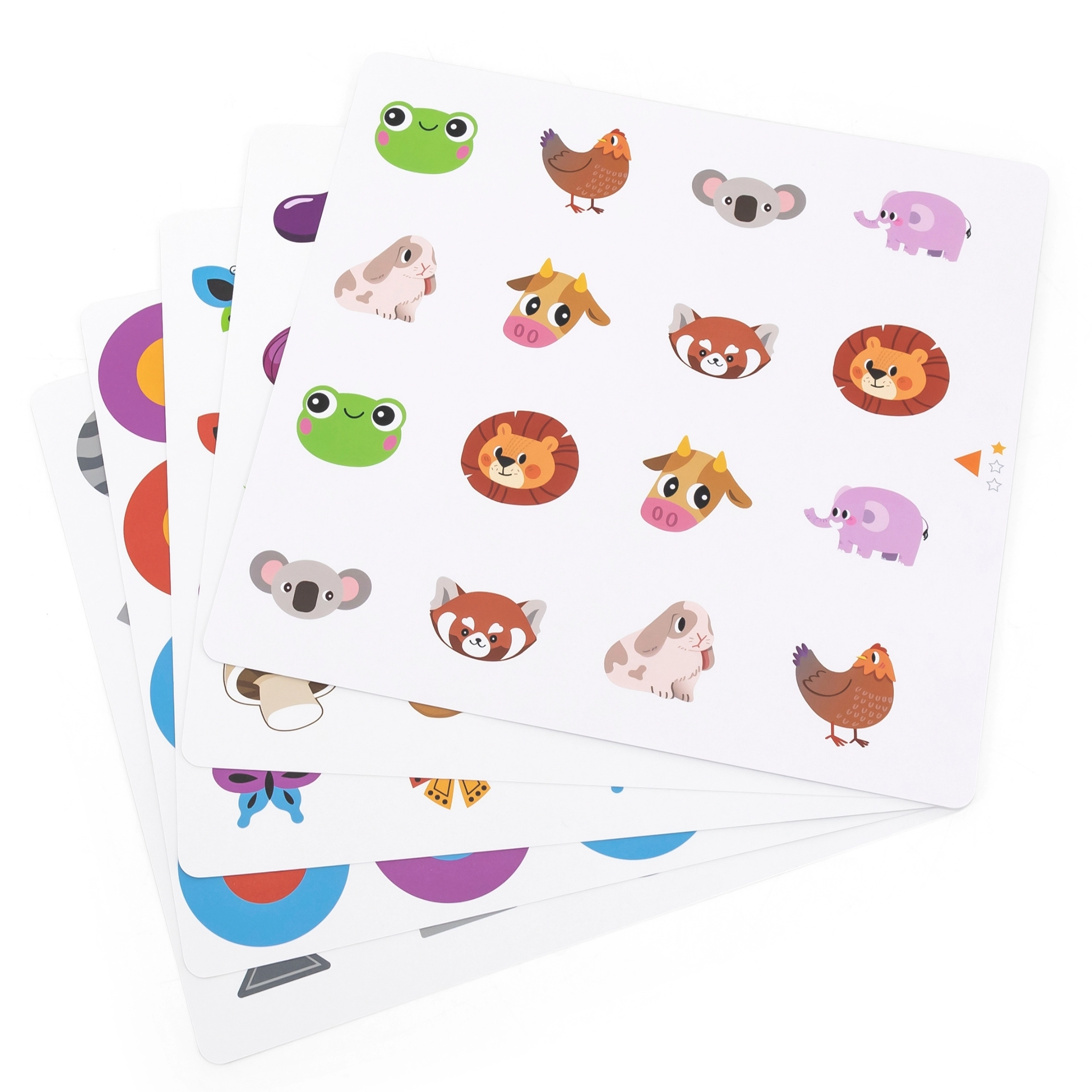 Vďaka 10 vymeniteľným kartám s farebnými motívmi (zvieratá, ovocie, zelenina, tvary a pod.) ľahko prispôsobíte náročnosť veku a zručnostiam dieťaťa. Hra je vyrobená z odolného dreva a opatrená bezpečnými, netoxickými farbami, takže je ideálna na každodenné používanie doma aj v materských školách.