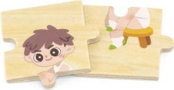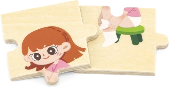 Táto kvalitná drevená vzdelávacia hračka učí deti správnemu postupu obliekania formou skladania nadväzujúcich dielikov s obrázkami chlapca a dievčaťa. Každý dielik má jedinečný motív a presne do seba zapadá, takže si deti pri hre precvičia vnímanie súvislostí aj trpezlivosť.