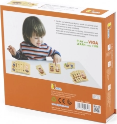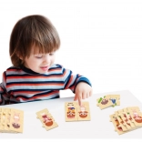 Bezpečné a pevné dieliky z prírodného dreva sú príjemné na dotyk a vďaka farebnej grafike udržia pozornosť malých objaviteľov. Sada je skvelá do detskej izby aj materských škôl ako didaktická pomôcka na každodenné hranie.