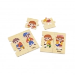 VIGA drevené vzdelávacie puzzle – obliekanie detí, 28 dielikov