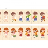 Sekvenčné dieliky zobrazujú fázy obliekania chlapca a dievčaťa, takže si deti ľahko osvoja správne poradie každodennej činnosti.