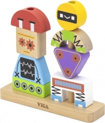 Drevená skladacia pyramída ROBOTI s kartami vzorov, 8 dielov – VIGA