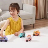 Vďaka kompaktnej veľkosti sa autíčka ľahko držia aj tým najmenším rúčkam. Hra podporuje rozvoj jemnej motoriky, koordinačných zručností, rozpoznávania farieb a logického myslenia. Sada je skvelým doplnkom k detským kuchynkám či mestám a perfektnou voľbou pre spoločnú hru súrodencov.