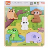 - Obsah sady: drevená doska + 5 dielikov (zajačik, opička, slon, sova, krokodíl)