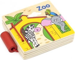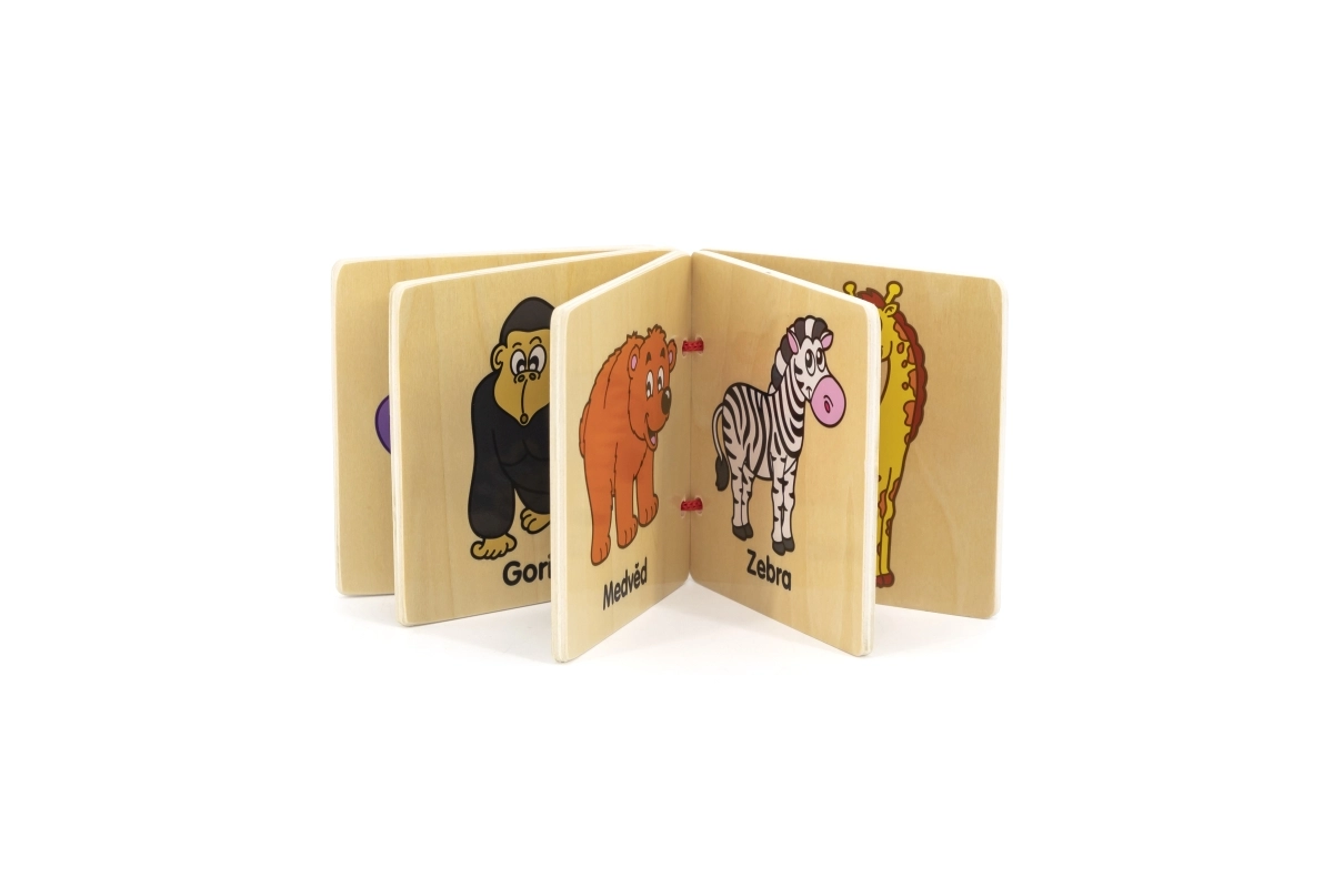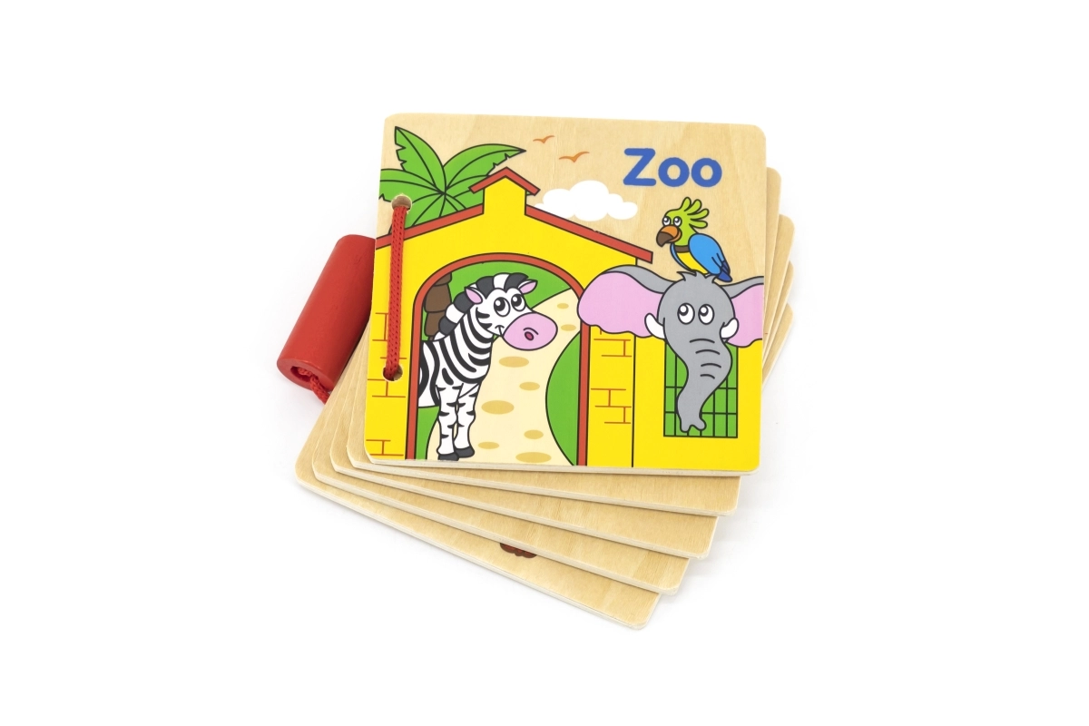 Táto roztomilá drevená knižka s motívom Zoo prináša deťom prvé zoznámenie so zvieratkami formou hry. Hrubé drevené strany s jasnými ilustráciami podporujú vizuálne vnímanie, jemnú motoriku a sústredenie. Vďaka kompaktnému formátu je ideálna na cesty aj do detskej izbičky.