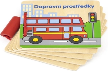 Táto kvalitná drevená knižka je ideálnou pomôckou na prvé zoznamovanie sa s okolím. Farebné ilustrácie áut, vlakov, lodí a ďalších dopravných prostriedkov dopĺňajú české popisky, takže si deti prirodzene rozvíjajú rečové zručnosti a poznávanie.